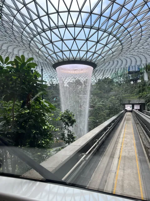 skytrain t2-t3 隧道穿梭星耀樟宜瀑布雨林景观 耳机里放着疯狂动物城的主题曲 来来回回坐了好多趟